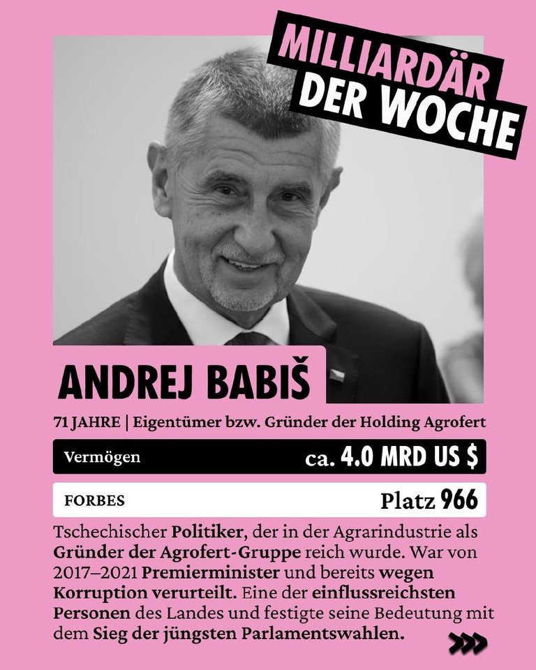 🏢 Eigentümer bzw. Gründer der Holding Agrofert mit Firmen in Landwirtschaft, Chemie und Lebensmittelindustrie