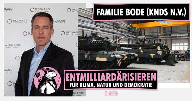 📢 Milliardäre wie die Familie Bode zeigen: Krieg ist ein Geschäft. Solange Gewalt profitabel bleibt, werden einige wenige die Gewalt weiter anheizen – zahlen tun andere.