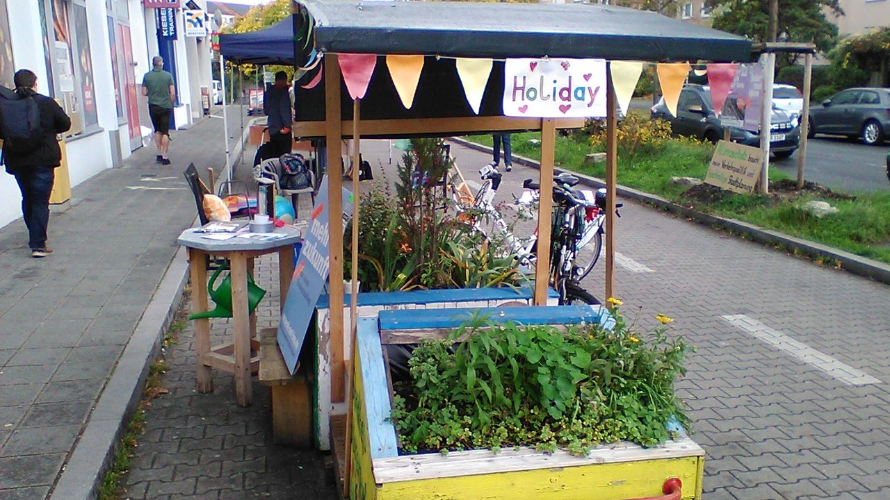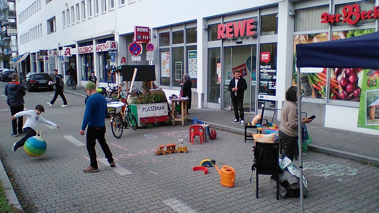 Diese Erfolgsgeschichte war uns am 29. Oktober 2025 einen eigenen Skillshare-Nachmittag wert: Wer wollte, konnte vor einem Supermarkt im Nürnberger Stadtteil Gleißhammer erfahren, wie es gelang, einen originellen, (nicht genehmigten) Verkehrsversuch als Dauereinrichtung zu etablieren. Fünf Jahre lang stand der hölzerne "Platzpark", bunt bemalt, bepflanzt und mit Fahrradständern und Sitzmöglichkeiten versehen, auf einem Parkstreifen. Genau hier verlief auch der schmale Grat zwischen Bürgerbeteiligung und zivilem Ungehorsam; keine Frage, diese fünf Jahre haben eine Veränderung in den Köpfen bewirkt.